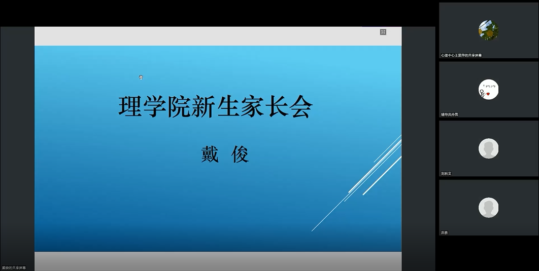 为了让新生及家长更加深入地了解学校、学院以及专业,搭建家校协同育人平台,威尼斯wns9778于9月15日晚上召开2023级新生线上家长会,威尼斯wns9778院长戴俊、副院长朱明星、党委副书记周志辉,学校心理健康教育中心王爱萍, 2023级辅导员、学业导师以及新生家长参加此次家长会。会议由2023级新生辅导员孙莞主持。