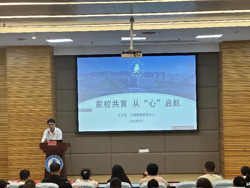 心理健康教育中心王士凯开展主题为“家校共育,从‘心’启航”专题讲座。内容涵盖大学生心理发展阶段与任务、家庭情绪支持与沟通技巧、积极心态培养方法以及校内外心理健康资源与求助途径,引导家长科学关注孩子心理状态,共同促进学生健康成长。